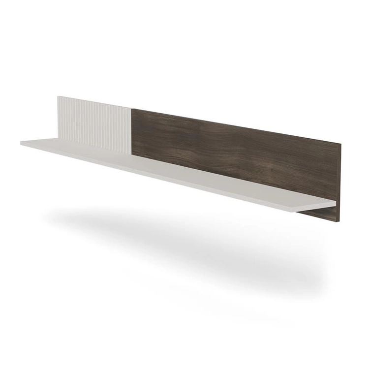 RANDOM 2 P-2 to stylowa półka wisząca zaprojektowana z myślą o nowoczesnych, funkcjonalnych wnętrzach. Jej wydłużona forma o szerokości aż 180 cm oferuje dużą powierzchnię ekspozycyjną, idealną na książki, ozdoby czy rośliny. Wykonana została z płyty meblowej i MDF-u okleinowanego, co gwarantuje trwałość, stabilność i estetyczne wykończenie. Harmonijne połączenie kolorów – kaszmiru, ciepłego orzecha i czerni – wprowadza do wnętrza elegancję i nowoczesny charakter. Półka świetnie prezentuje się jako samodzielny element lub w zestawie z innymi meblami z kolekcji RANDOM 2, tworząc spójną aranżację przestrzeni.