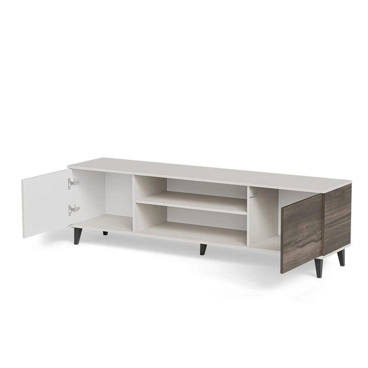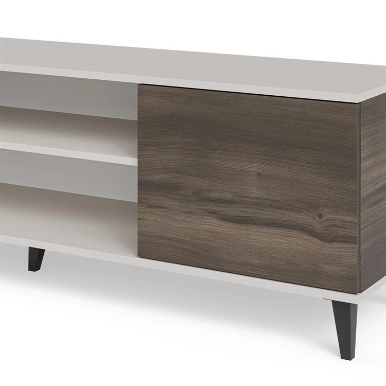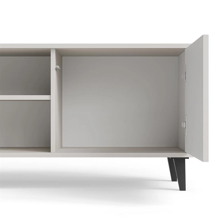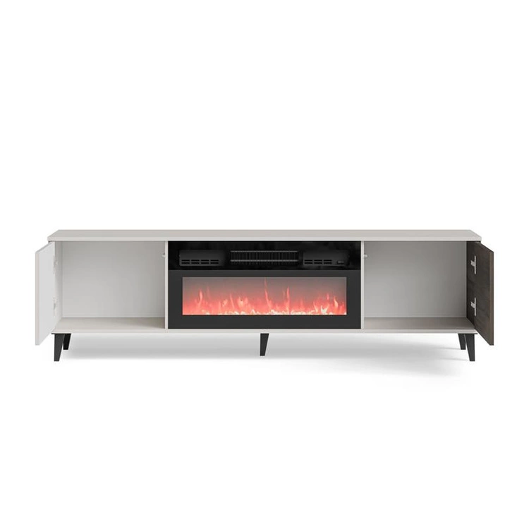 Stolik RTV RANDOM 2 RTV-K to wyjątkowe połączenie nowoczesnego mebla multimedialnego z funkcją dekoracyjnego kominka elektrycznego. W centralnej części mebla znajduje się realistycznie podświetlany wkład kominkowy, który dodaje wnętrzu ciepła i nastroju — idealny do wieczornego relaksu. Mebel został wykonany z trwałych materiałów: płyty meblowej oraz MDF-u okleinowanego, a jego design oparto na modnej kombinacji kolorystycznej – fronty w kaszmirze, korpus w odcieniu orzecha oraz czarne detale i nóżki z polipropylenu. Szerokość 180 cm sprawia, że stolik pomieści telewizor i wszystkie niezbędne urządzenia RTV, jednocześnie będąc ozdobą wnętrza. Kominek nie tylko efektownie wygląda, ale też może pełnić funkcję dodatkowego źródła ciepła (jeśli wyposażony jest w grzałkę).