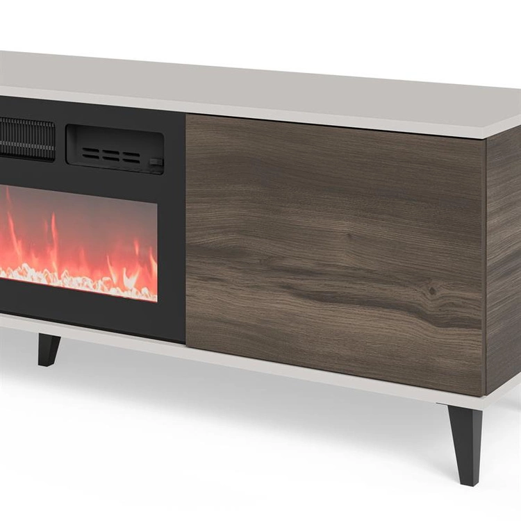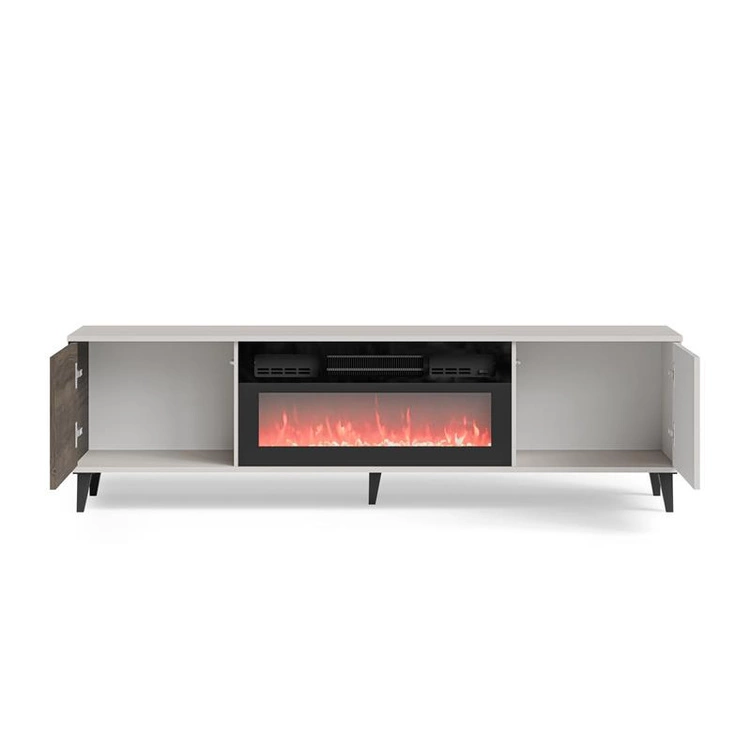Stolik RTV z kominkiem RANDOM 2 RTV-K w kolorze kaszmir / orzech / czarny