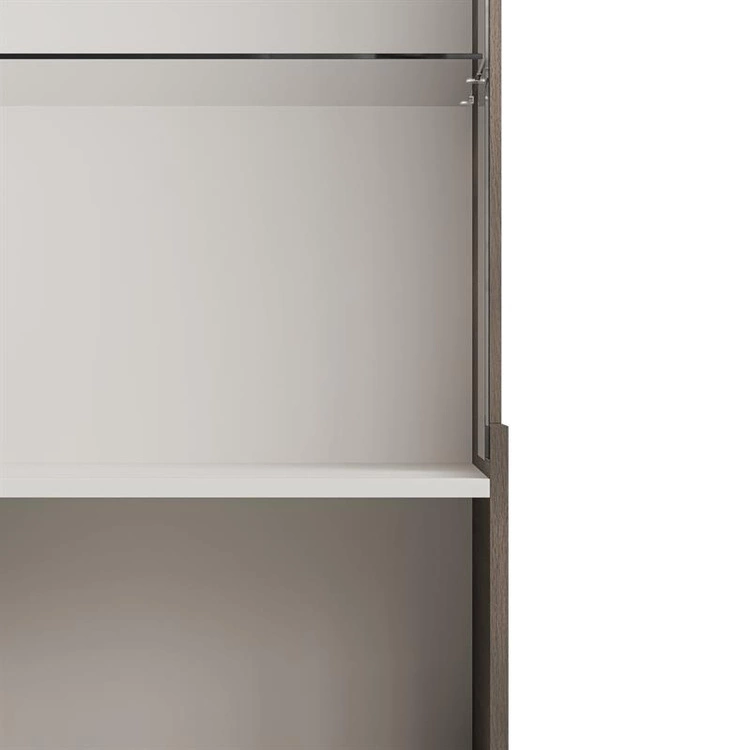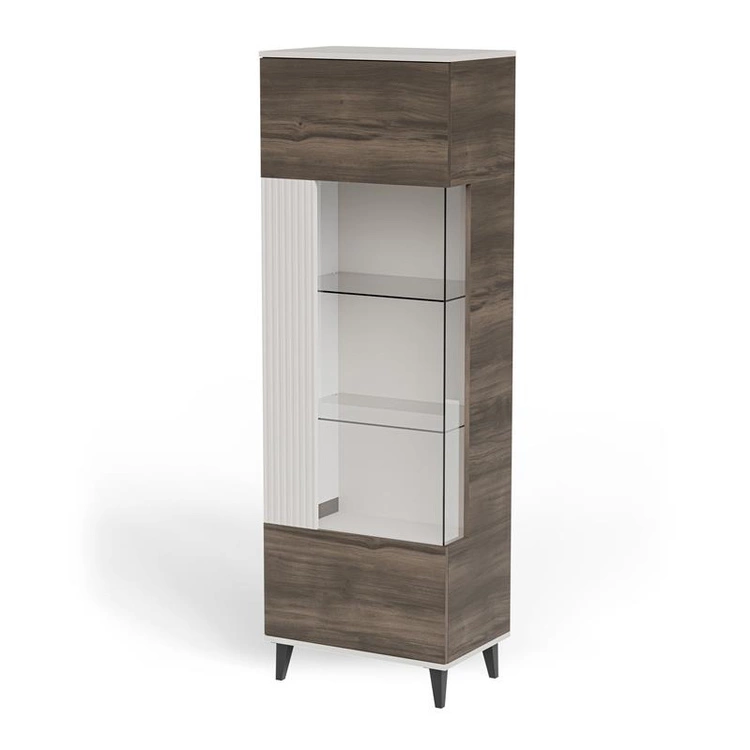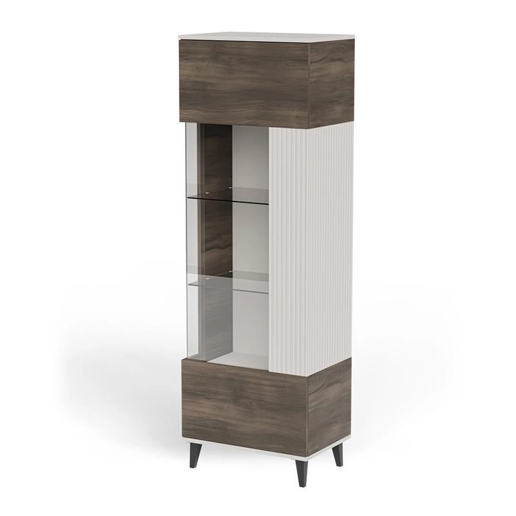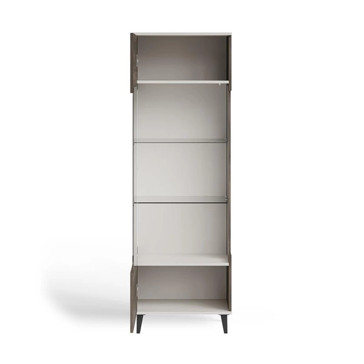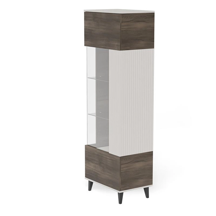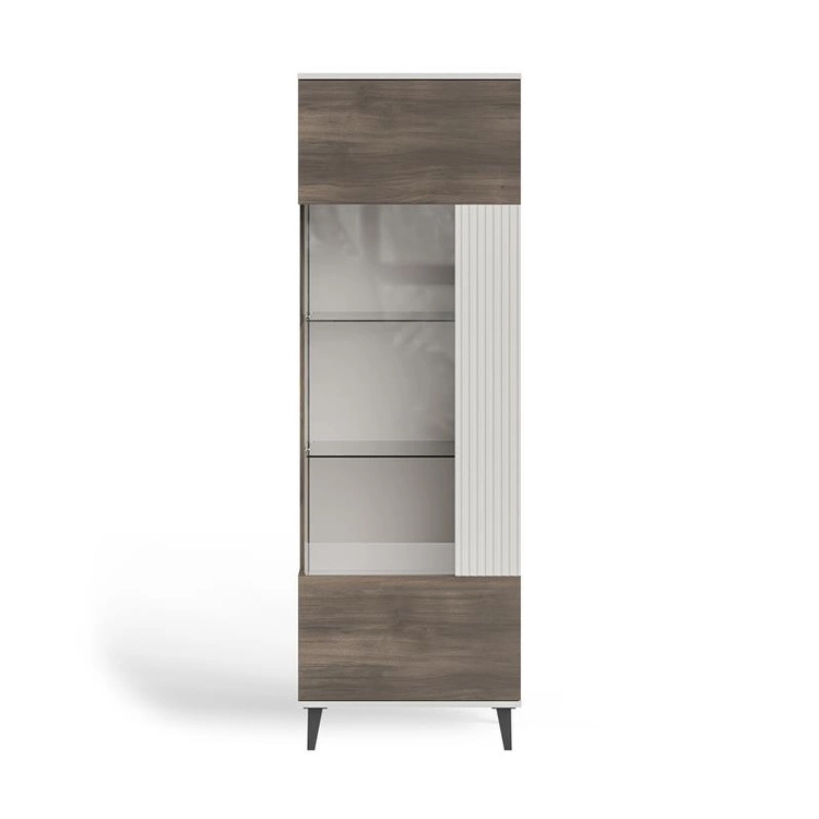 RANDOM 2 W-1 to stylowa witryna, która wyróżnia się harmonijnym połączeniem trzech kolorów – ciepłego kaszmiru, naturalnego orzecha i eleganckiej czerni. Wykonana z wysokiej jakości płyty meblowej i MDF-u, oferuje solidność i trwałość na lata. Górna część z przeszklonym frontem umożliwia estetyczną ekspozycję dekoracji, porcelany lub szkła, a dolna część zamknięta zapewnia dyskretne miejsce do przechowywania. Dzięki starannie dobranym proporcjom i nowoczesnemu wzornictwu, witryna doskonale komponuje się z innymi elementami kolekcji RANDOM 2, tworząc spójny i elegancki wystrój wnętrza.