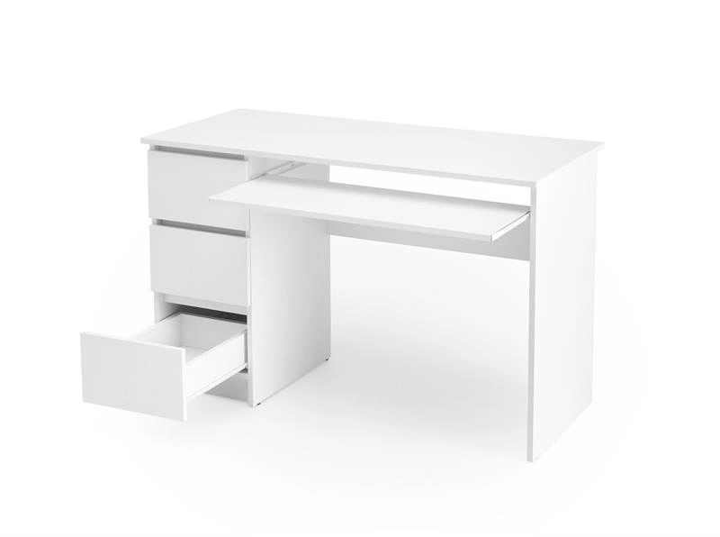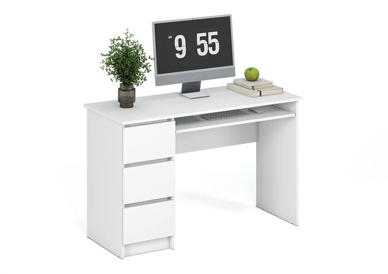 - Biurko CINO w białym kolorze to kompaktowy i funkcjonalny mebel o nowoczesnej formie. Idealne do pracy, nauki lub jako toaletka, wyróżnia się prostym designem i uniwersalnym charakterem pasującym do wielu aranżacji.