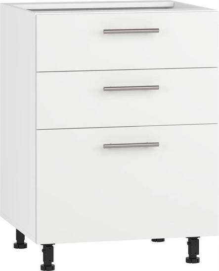 Szafka dolna VENTO D3S-60/82 w białym macie z trzema szufladami i mechanizmem Hettich