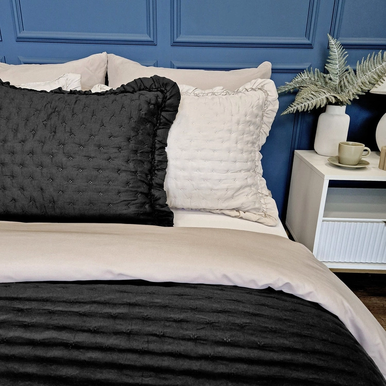Poszewka dekoracyjna CELIA 02 to propozycja dla osób, które pragną dodać swoim wnętrzom nuty elegancji i romantyzmu. Jej wyjątkowy design łączy delikatne, regularne pikowanie z ozdobną falbaną, tworząc efektowną całość o subtelnym i ponadczasowym charakterze. Odcienie czerni sprawiają, że poszewka wyróżnia się nowoczesnym wyglądem, a jednocześnie pozostaje uniwersalna – doskonale dopasuje się zarówno do wnętrz klasycznych, jak i tych urządzonych w stylu glamour, boho czy minimalistycznym.