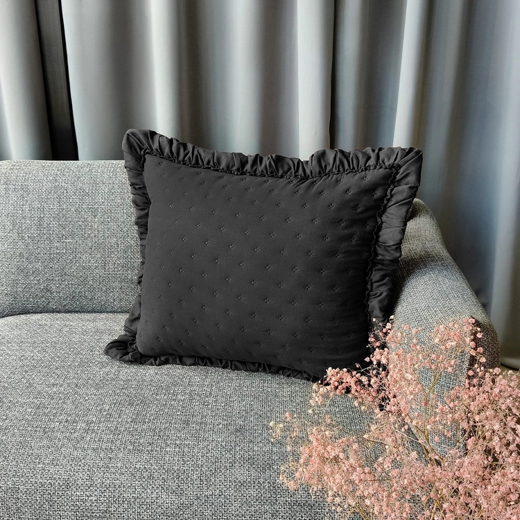 - Poszewka dekoracyjna CELIA 02 50x60 cm w odcieniach czerni to elegancki i praktyczny dodatek, który odmieni charakter wnętrza. Ozdobna falbana i subtelne pikowanie nadają jej romantycznego stylu, a ukryty zamek błyskawiczny zapewnia wygodę użytkowania.