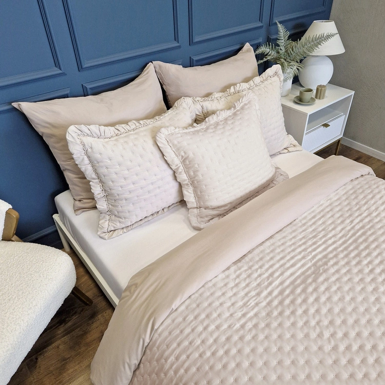 Poszewka dekoracyjna CELIA 03 to kwintesencja elegancji w naturalnym wydaniu. Jej beżowa kolorystyka wprowadza do wnętrza harmonię, spokój i ciepło, tworząc przyjemną atmosferę sprzyjającą relaksowi. Subtelne pikowanie dodaje głębi i trójwymiarowości, a dekoracyjna falbana nadaje całości wyjątkowego, romantycznego charakteru. Dzięki temu poszewka stanowi nie tylko praktyczny element wyposażenia, ale przede wszystkim ozdobę, która ożywia aranżację i dodaje jej uroku.