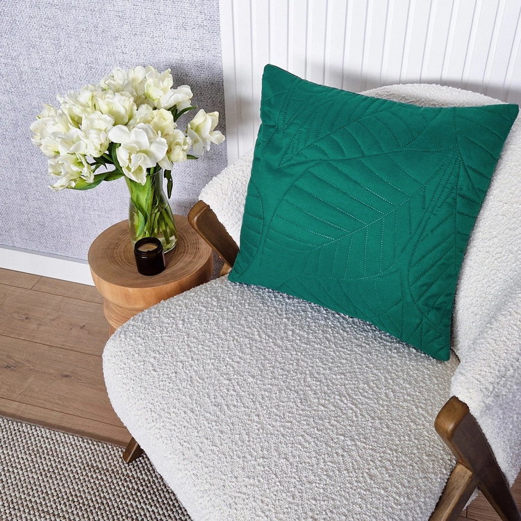 - Poszewka dekoracyjna CORRADO 05 45x45 cm w odcieniach zieleni, wykonana z miękkiej i trwałej mikrofibry. Subtelny tłoczony wzór w liście nadaje wnętrzu elegancji i świeżości. Idealna do sypialni i salonu.