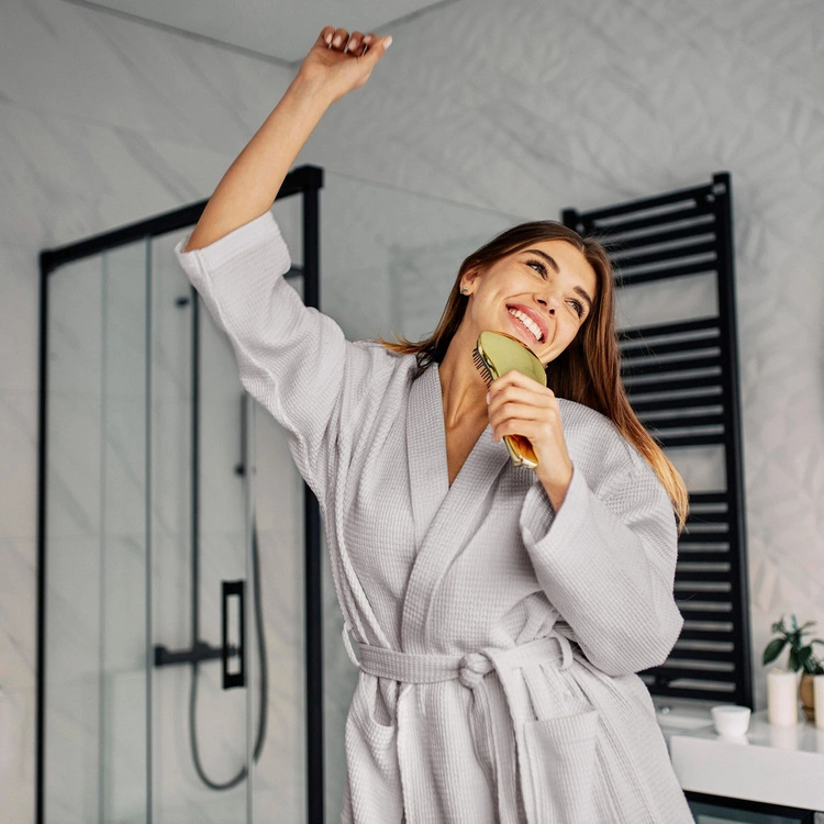 Model wyposażony jest w wiązanie w talii, które umożliwia idealne dopasowanie do sylwetki, a praktyczne boczne kieszenie dodają funkcjonalności – pomieszczą telefon, drobiazgi czy kosmetyki. Szlafrok jest lekki i szybko schnie, dzięki czemu doskonale sprawdzi się nie tylko w domu, ale także w hotelu czy podczas podróży.