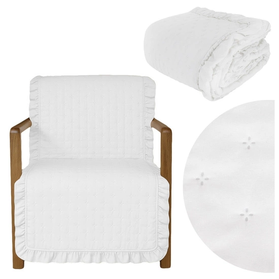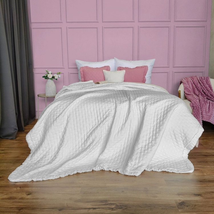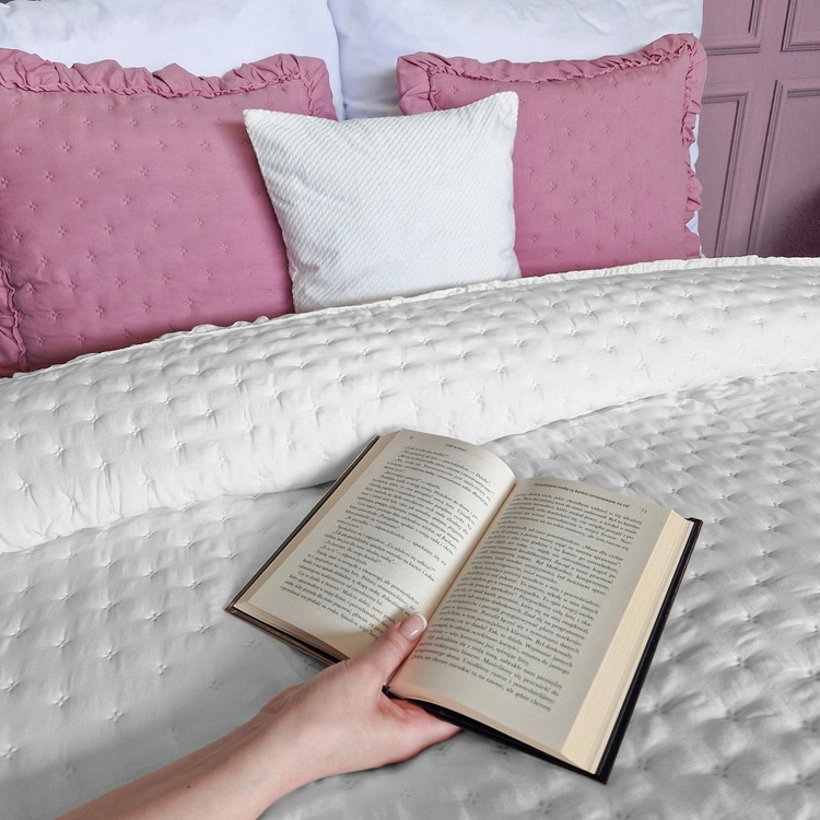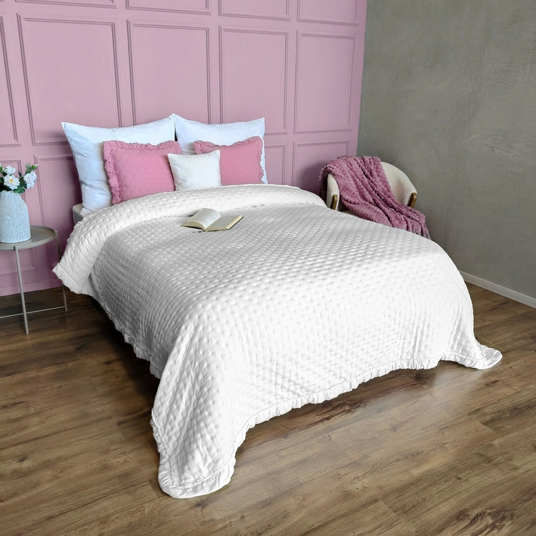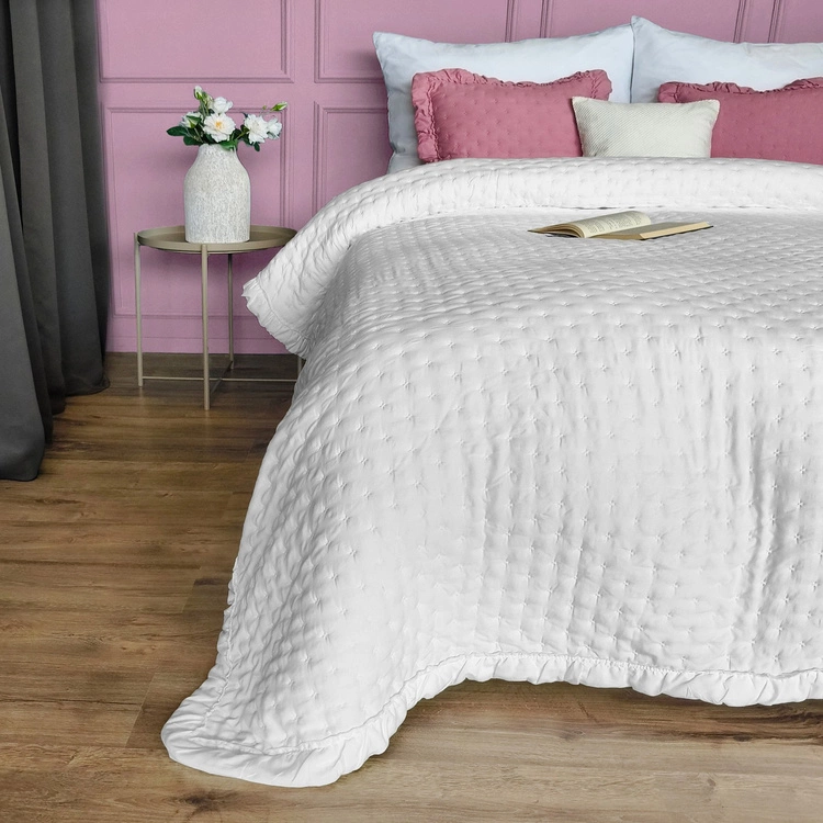 Delikatne pikowanie sprawia, że tkanina zyskuje efektowną strukturę, która nadaje całości elegancji i sprawia, że narzuta prezentuje się estetycznie nawet na nieidealnie pościelonym łóżku. Ozdobna falbana dodaje uroku i romantycznego charakteru, tworząc przyjemną, przytulną atmosferę.
