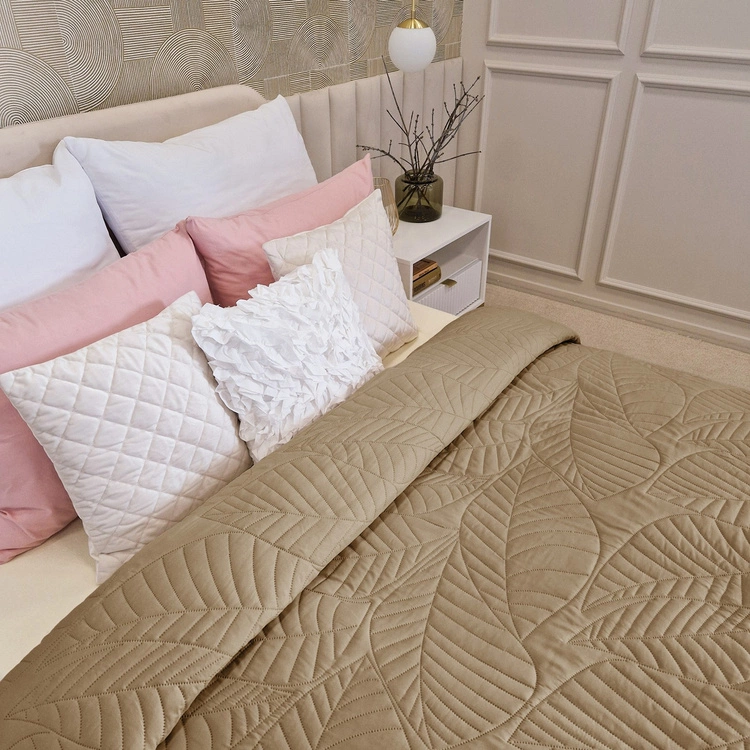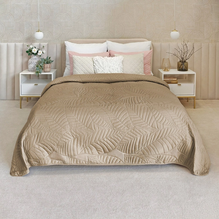 Wyjątkowym elementem narzuty Corrado są tłoczone wzory w formie subtelnych liści, które nadają całości eleganckiego charakteru. To detal, który sprawia, że narzuta pełni nie tylko funkcję praktycznej ochrony pościeli przed kurzem i zabrudzeniami, ale także staje się ważnym akcentem dekoracyjnym w sypialni.