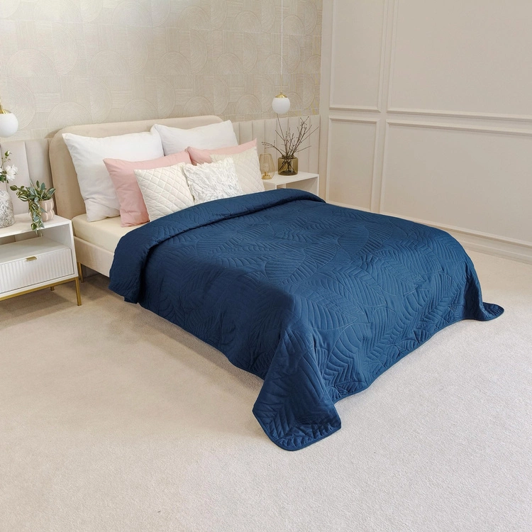 Narzuta Corrado 08 o wymiarach 220x240 cm to doskonały wybór dla osób, które pragną połączyć praktyczność z elegancją. Jej chłodne odcienie niebieskiego wprowadzają do wnętrza atmosferę harmonii i relaksu, tworząc przyjemną przestrzeń sprzyjającą odpoczynkowi. Niebieski kolor symbolizuje spokój, świeżość i równowagę, dlatego narzuta ta świetnie sprawdzi się zarówno w sypialniach urządzonych klasycznie, jak i w nowoczesnych aranżacjach.