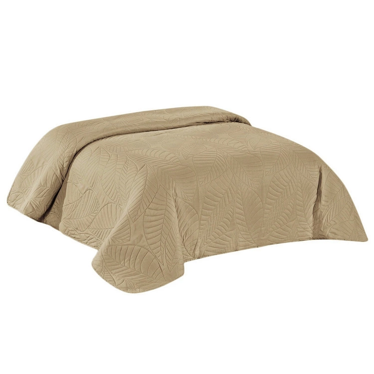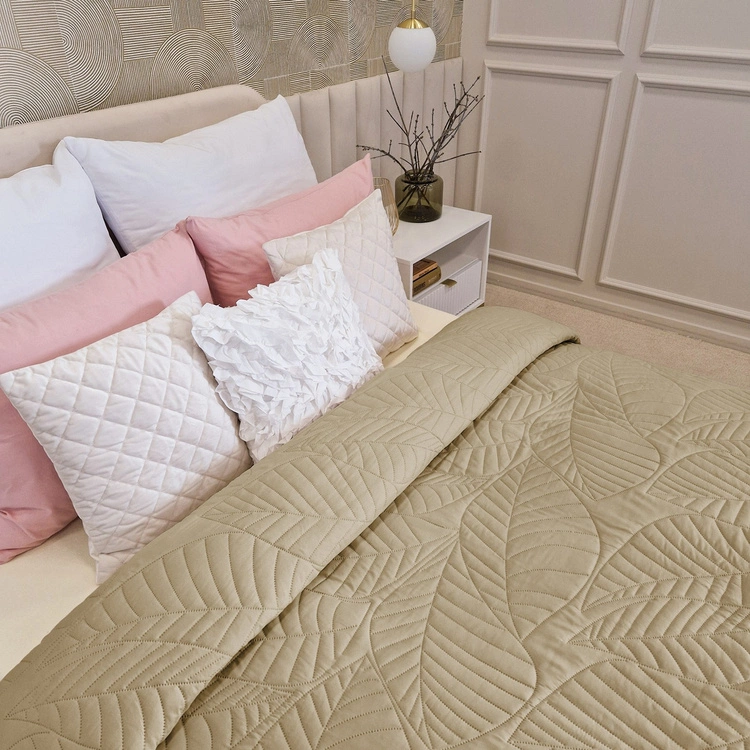 Subtelne tłoczone wzory w kształcie liści dodają całości wyjątkowego charakteru. Ich delikatna faktura sprawia, że powierzchnia narzuty staje się trójwymiarowa, a neutralny beż zyskuje głębię i elegancję. To detal, który w prosty sposób odmienia wnętrze, dodając mu naturalnego wdzięku i lekkości.