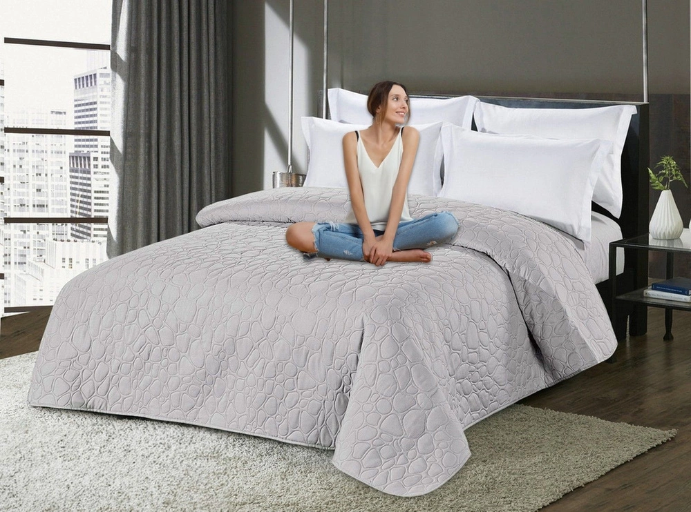 - Narzuta Nicole 06 w odcieniach szarości i srebra 170x210 cm to elegancki akcent, który odmieni Twoją sypialnię. Miękka mikrofibra z tłoczonym wzorem zapewnia komfort, a zarazem dodaje wnętrzu stylu i luksusu.