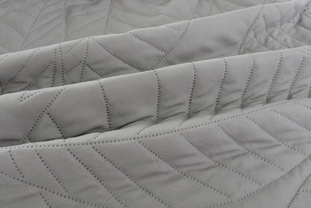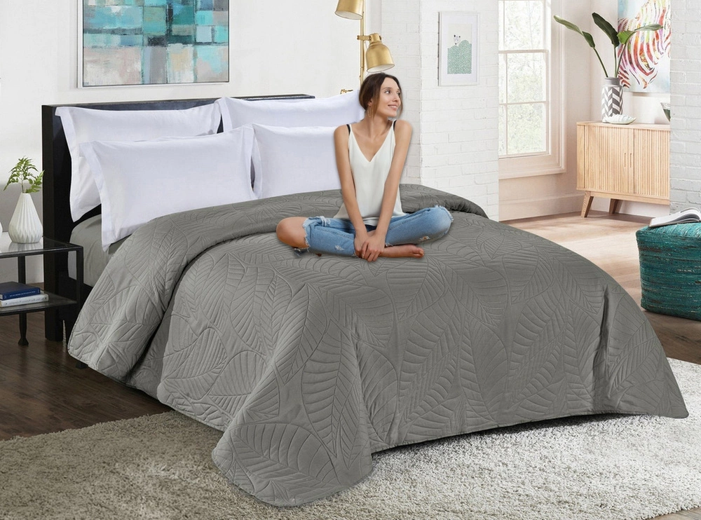 Duży rozmiar 200x220 cm pozwala na idealne dopasowanie narzuty do większych łóżek, otulając je i nadając im efekt luksusowej aranżacji. Szaro-srebrna paleta barw doskonale współgra zarówno z jasnymi wnętrzami, jak i ciemniejszymi akcentami, tworząc nowoczesne, spójne i eleganckie zestawienia.