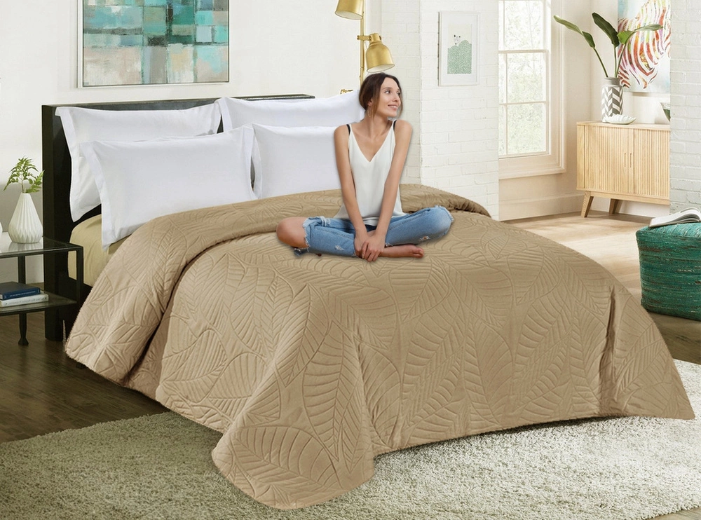 Wykonana z mikrofibry wysokiej jakości, narzuta zachwyca miękkością i delikatnym dotykiem, a zarazem jest trwała i odporna na codzienne użytkowanie. Subtelne tłoczone wzory zdobią powierzchnię, wprowadzając do sypialni dekoracyjny, elegancki charakter. Duży rozmiar 200×220 cm idealnie otula nawet duże łóżka, nadając im dopracowany i luksusowy wygląd. Beż doskonale harmonizuje z drewnem, bielą i pastelami, tworząc stylowe, spokojne aranżacje.