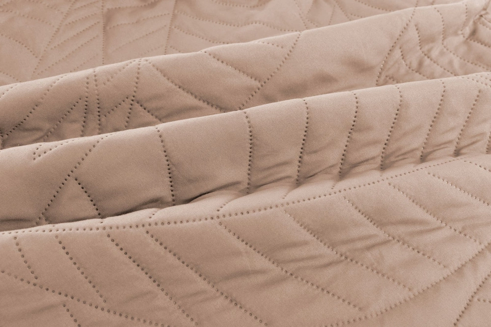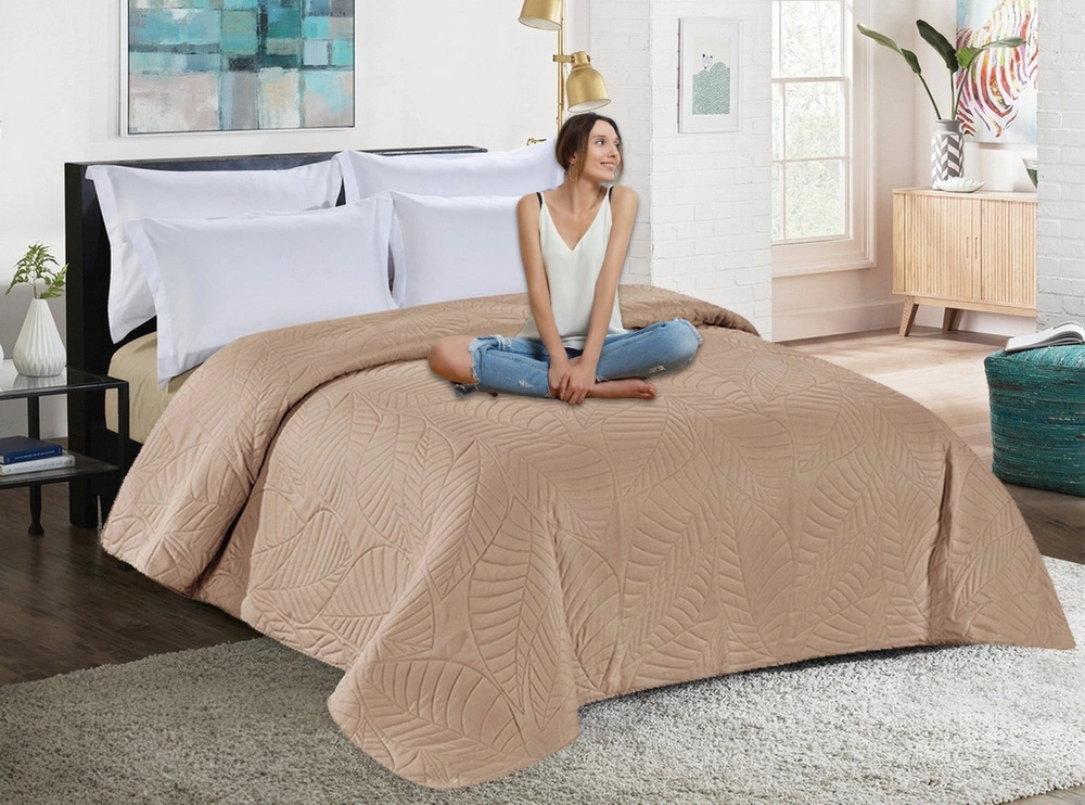 Dzięki dużemu rozmiarowi 220x240 cm narzuta doskonale sprawdza się na dużych łóżkach małżeńskich, elegancko je otulając i nadając aranżacji luksusowego wykończenia. Odcienie beżu świetnie współgrają z drewnem, pastelami czy bielą, a także znakomicie łagodzą nowoczesne, surowe przestrzenie, dodając im przytulności.