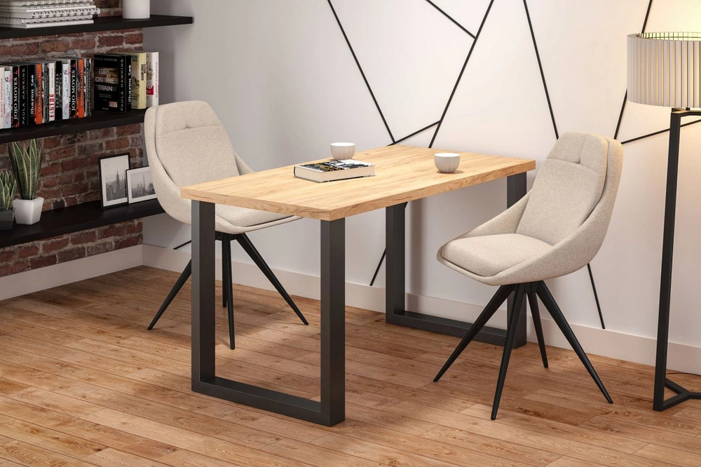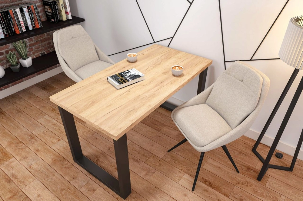 Stół LARGO to połączenie nowoczesnego designu i funkcjonalności. Blat w wybarwieniu dąb złoty craft nadaje wnętrzu ciepła i naturalnego charakteru, a czarne stalowe nogi w kształcie litery U podkreślają industrialny styl mebla. Laminowana powierzchnia jest odporna na codzienne użytkowanie, a wykończone obrzeża ABS zwiększają jego trwałość i estetykę. Solidna stalowa konstrukcja malowana proszkowo gwarantuje stabilność i długowieczność stołu. Dzięki kompaktowym wymiarom LARGO doskonale sprawdzi się zarówno w jadalni, jak i w mniejszych pomieszczeniach, tworząc elegancką i praktyczną przestrzeń do wspólnych posiłków.