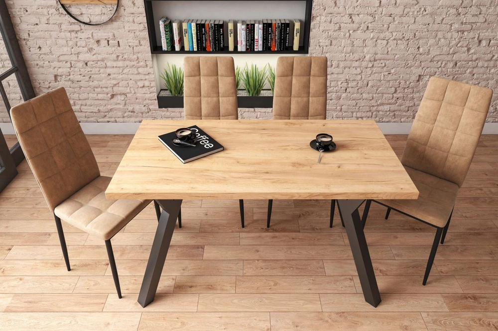 - Stół VESTA łączy ciepły odcień dębu złotego craft z nowoczesnymi czarnymi nogami w kształcie litery Y. Solidny blat z płyty laminowanej i stabilna podstawa ze stali proszkowanej gwarantują trwałość i elegancję.