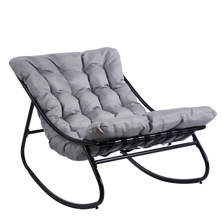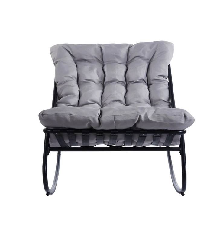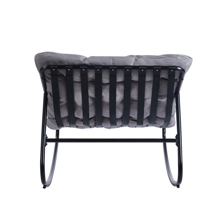 Fotel bujany MELLO to doskonały wybór dla osób ceniących wygodę i relaks. Jego nowoczesna forma w połączeniu z klasyczną funkcją bujania sprawia, że idealnie nadaje się zarówno do salonu, jak i na taras czy balkon. Siedzisko wykonano z wytrzymałej tkaniny outdoor odpornej na działanie warunków atmosferycznych, dzięki czemu mebel zachowuje trwałość i estetyczny wygląd nawet podczas użytkowania na zewnątrz. Stabilny stelaż z metalu malowanego proszkowo w kolorze czarnym wraz z dopasowanymi płozami gwarantuje solidność i komfort użytkowania. Neutralna, szara kolorystyka nadaje fotelowi uniwersalny charakter, który harmonijnie wkomponuje się w różne aranżacje wnętrz i przestrzeni ogrodowych. MELLO to fotel stworzony do odpoczynku – idealny do wieczornego relaksu, czytania czy delektowania się filiżanką kawy.