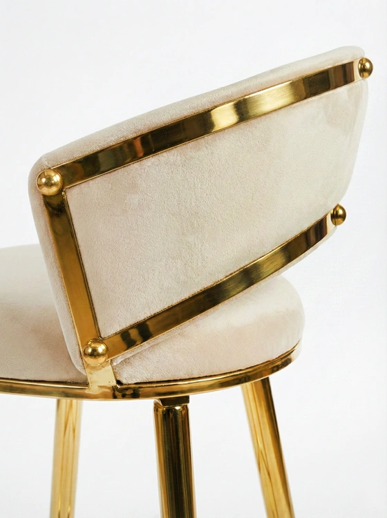 Stabilna, metalowa konstrukcja malowana proszkowo na złoto zapewnia trwałość i odporność na codzienne użytkowanie, a półhokerowa wysokość czyni TESSA doskonałym wyborem do wysp kuchennych, podwyższonych stołów jadalnianych czy eleganckich stref barowych.