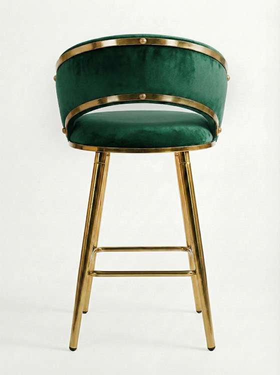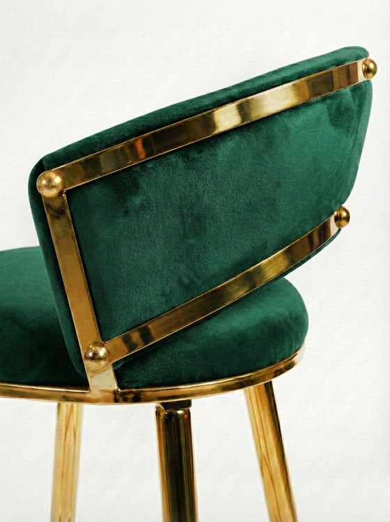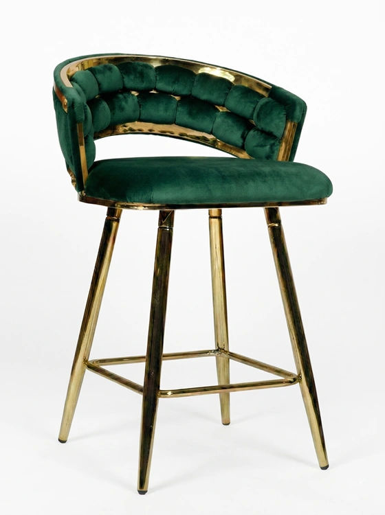 - Krzesło barowe TESSA VELVET w zielonym welurze na złotym stelażu to półhoker łączący komfort i luksusowy design. Plecione siedzisko i eleganckie wykończenie glamour sprawiają, że idealnie pasuje do kuchni, jadalni i stref barowych.
