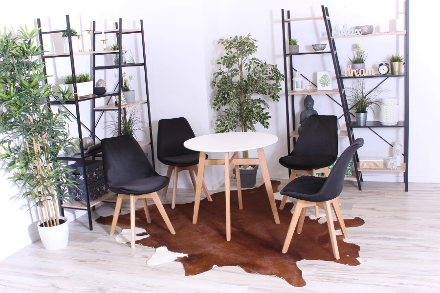 Stelaż wykonany z wysokiej jakości drewna bukowego podkreśla naturalny charakter krzesła, wprowadzając do aranżacji element ciepła i lekkości. Stabilne nogi oraz dobrze wyprofilowane siedzisko zapewniają wygodę i bezpieczne użytkowanie, a kompaktowe wymiary czynią ten model idealnym rozwiązaniem do wnętrz o mniejszym metrażu.