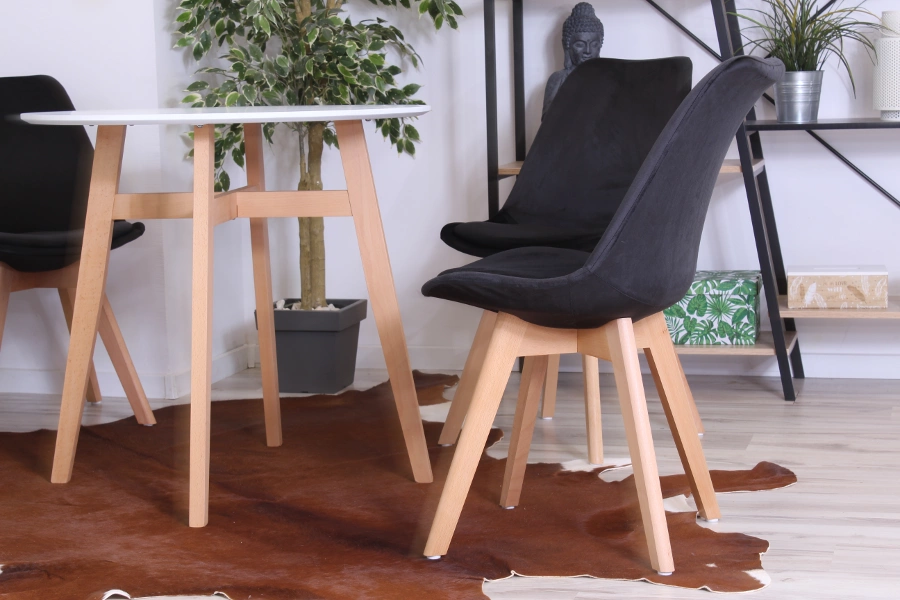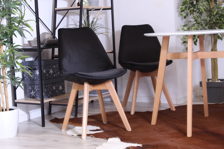 Krzesło tapicerowane CHARLIE TAP A czarny welur z bukowymi nogami
