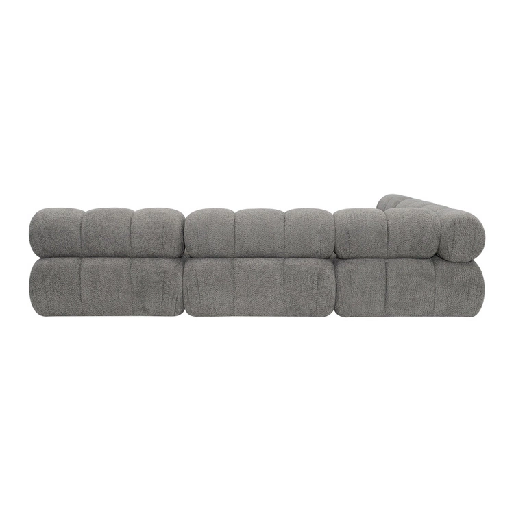 Miękkie, zaokrąglone kształty i dekoracyjne pikowania nadają sofie przytulny, a zarazem nowoczesny wygląd. Głębokie siedziska oraz ergonomiczne oparcia gwarantują komfort codziennego wypoczynku, a modułowa konstrukcja pozwala dowolnie zmieniać układ w zależności od potrzeb i przestrzeni.