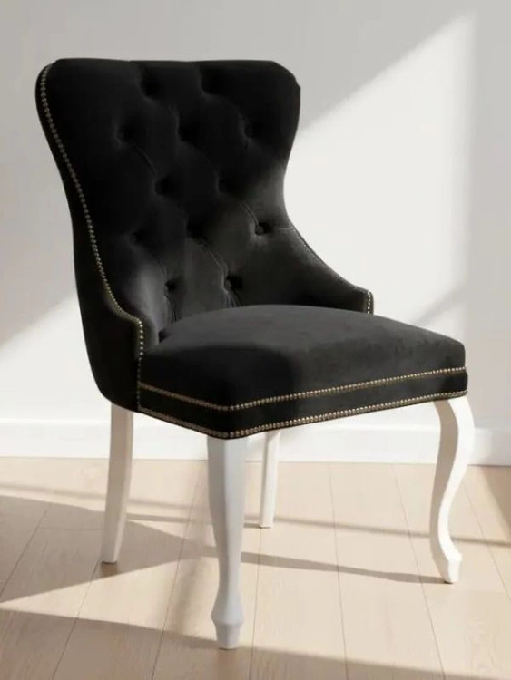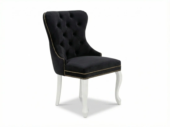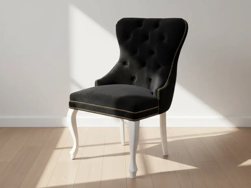 • Krzesło tapicerowane z pikowanym oparciem i nogami w stylu ludwik