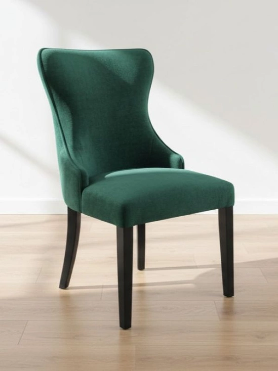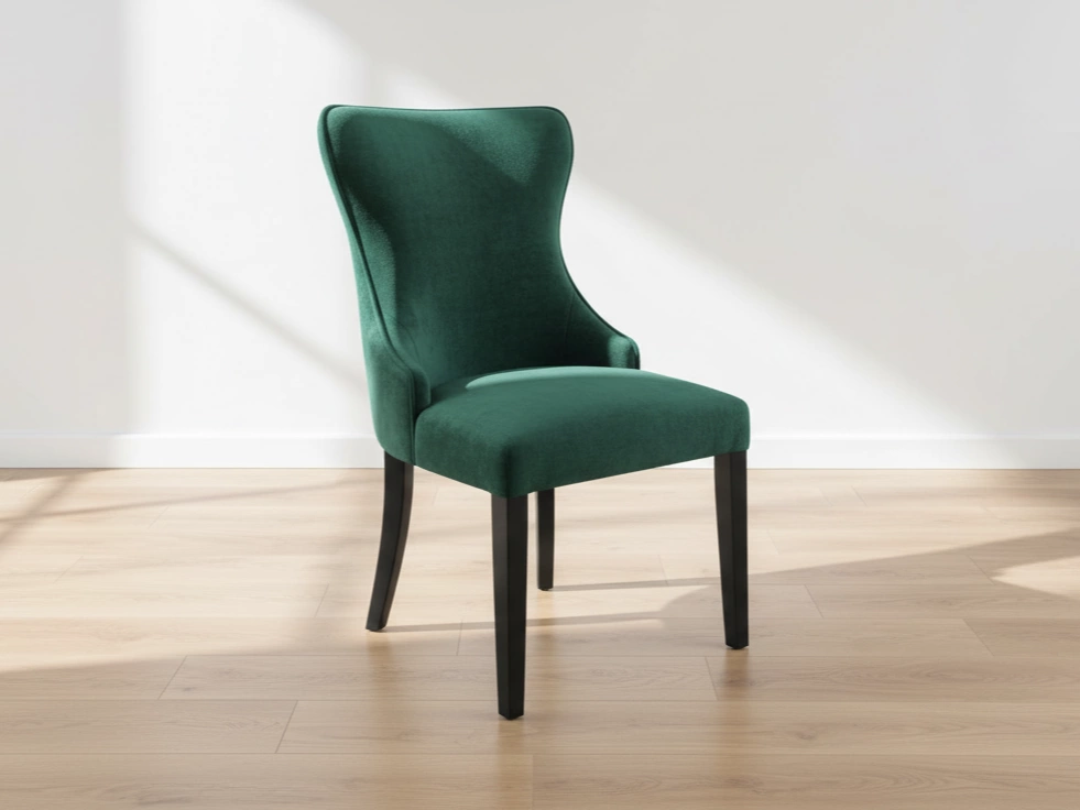 Drewniany stelaż wykonany z solidnego drewna bukowego gwarantuje trwałość i stabilność przez lata, natomiast wypełnienie sprężyną falistą oraz wysokiej jakości pianką HR45 zapewnia elastyczność i wygodę nawet podczas długiego siedzenia. Krzesło świetnie sprawdzi się zarówno przy eleganckim stole w jadalni, jak i w salonie, gabinecie, restauracji czy biurze.