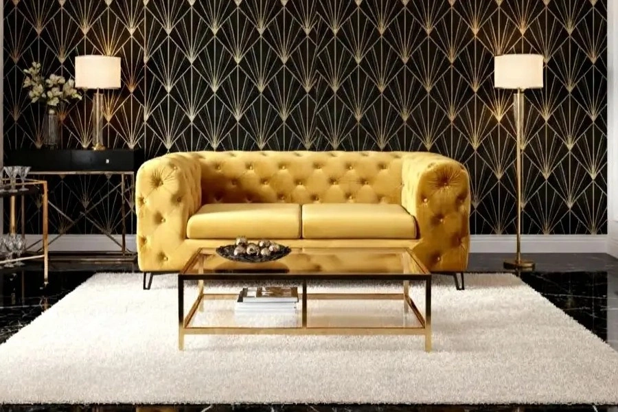 • Dwuosobowa sofa MOMOA to elegancki mebel w stylu glamour, który zachwyca efektownym pikowaniem, wysoką jakością wykonania oraz niezwykłym komfortem. Doskonale sprawdzi się w stylowych salonach, nadając wnętrzu luksusowego charakteru i tworząc przytulne mi