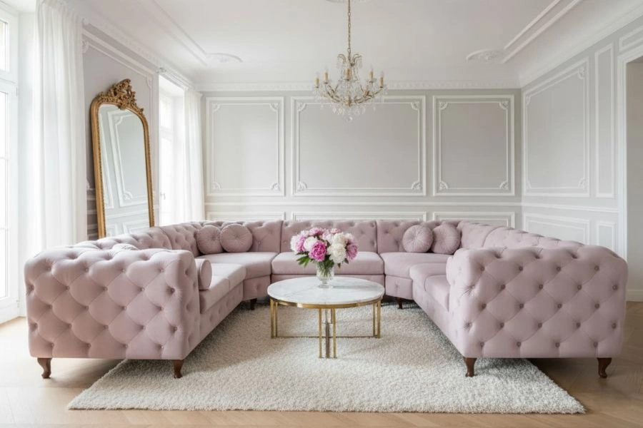 Luksusowy narożnik MOMOA U to mebel, który łączy ponadczasowy urok stylu Chesterfield z nowoczesnym komfortem użytkowania. Jego charakterystyczne pikowania, perfekcyjnie wyprofilowane podłokietniki oraz elegancka forma czynią go centralnym punktem każdego salonu, wnosząc do wnętrza wyrafinowanie i elegancję.