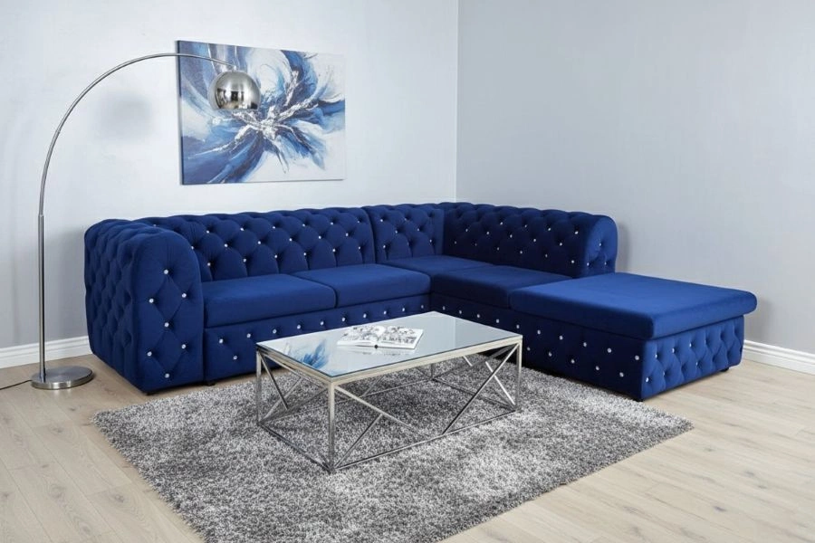 - Elegancki narożnik MOMOA w stylu glamour to połączenie komfortu, funkcjonalności i luksusowego designu. Aksamitna tapicerka, efektowne pikowania oraz opcjonalna funkcja spania sprawiają, że narożnik doskonale sprawdzi się zarówno w codziennym użytkowaniu,