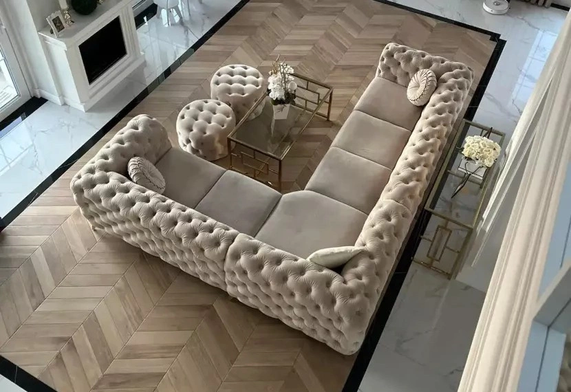 Pikowana tapicerka z guzikami lub kryształkami (złote, srebrne, czarne, kolorowe)
