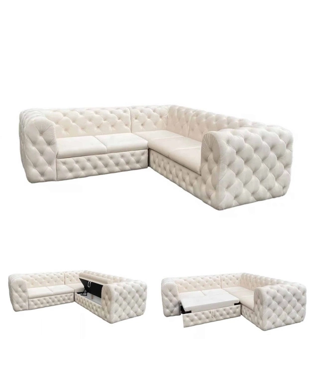 - Pikowany narożnik MOMOA 311 × 190 cm to luksusowy mebel w stylu glamour, łączący wyjątkowy design z praktycznymi funkcjami. Ręczne pikowania, funkcja spania oraz pojemnik na pościel sprawiają, że narożnik jest zarówno elegancką ozdobą wnętrza, jak i komfo