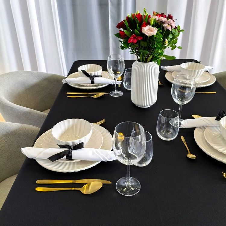 Klasyczny odcień obrusu Hanah dodaje elegancji i lekkości każdemu nakryciu stołu, sprawiając, że nawet codzienny posiłek nabiera wyjątkowego charakteru. Doskonale prezentuje się w jadalni, kuchni czy salonie, a także podczas świąt, uroczystości i przyjęć. Czarny kolor efektownie kontrastuje z jasną zastawą i świeżymi kwiatami, tworząc stylowe, ponadczasowe aranżacje. Specjalne wykończenie materiału chroni przed wsiąkaniem płynów, co ułatwia utrzymanie obrusu w czystości. Delikatna mereżka wokół krawędzi dodaje mu subtelnego uroku i podkreśla wysoką jakość wykonania.