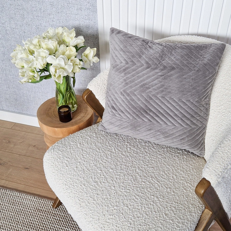 - Poszewka 40 x 40 Caden 02 w odcieniach szarości i srebra łączy elegancję z komfortem. Miękki welur i delikatny wzór jodełki dodają wnętrzu stylu i przytulności, pasując do każdego wystroju – od nowoczesnego po klasyczny.