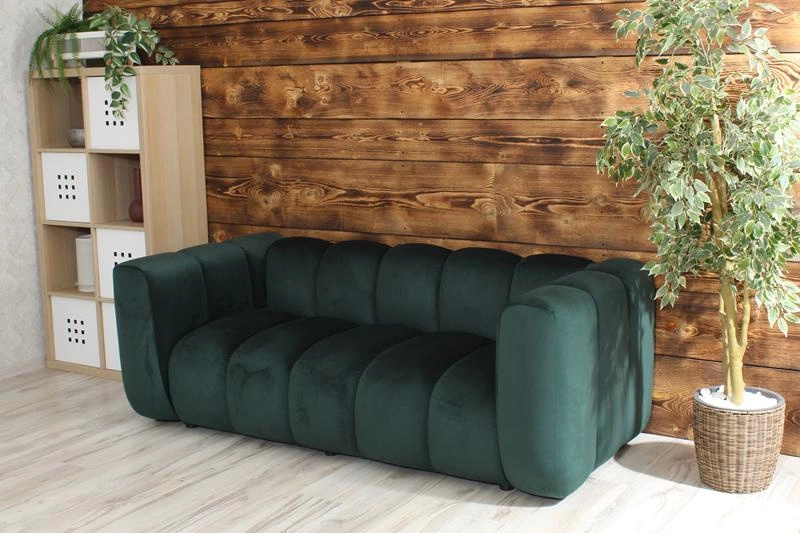 Sofa dwuosobowa nowoczesna SOMA 2 tapicerowana welurem butelkowa zieleń welur