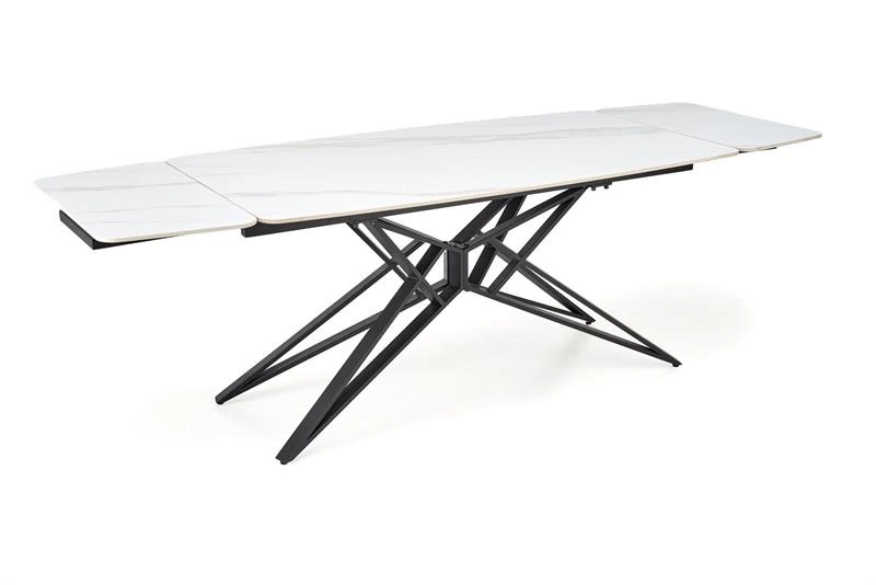 Stół rozkładany z marmurowym blatem ALFREDO biały na czarnym stelażu