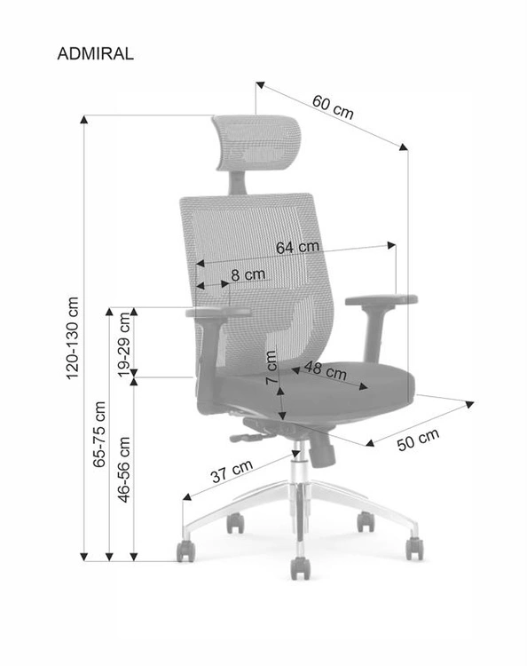- Fotel gabinetowy ADMIRAL w kolorze czarno-popielatym to połączenie elegancji i ergonomii. Mechanizm MULTIBLOCK, regulowany zagłówek i podłokietniki oraz aluminiowa podstawa gwarantują najwyższy komfort podczas pracy.