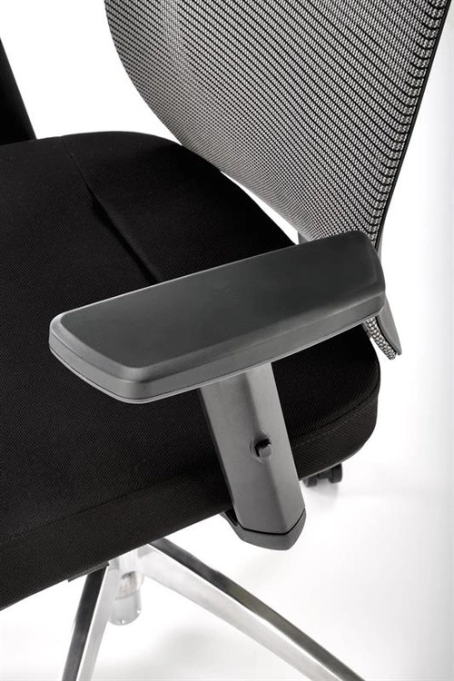 Ergonomiczny fotel gabinetowy ADMIRAL w kolorze czarno-popielatym z aluminiową podstawą