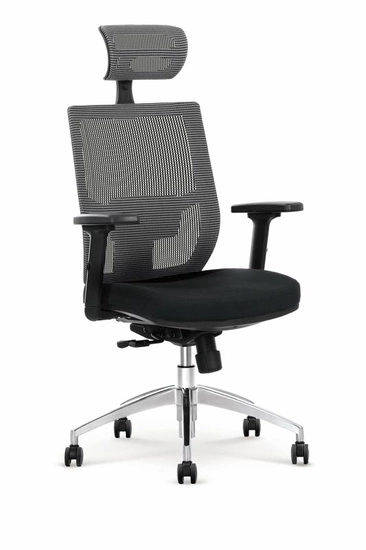 Oparcie z przewiewnej siatki dba o odpowiednią cyrkulację powietrza, a miękkie, tapicerowane siedzisko wykonane z wysokiej jakości tkaniny zapewnia wygodę i trwałość. Stabilna aluminiowa podstawa nadaje całości lekkości wizualnej i podkreśla nowoczesny charakter fotela ADMIRAL.