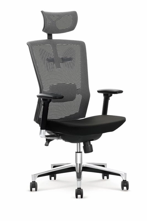 Fotel gabinetowy AMBASADOR w kolorze czarno-popielatym to elegancki i zaawansowany technologicznie model stworzony z myślą o wygodzie oraz zdrowej postawie podczas pracy. Jego solidna konstrukcja, przemyślane detale i liczne funkcje regulacji sprawiają, że idealnie sprawdza się zarówno w nowoczesnym biurze, jak i w domowym gabinecie.