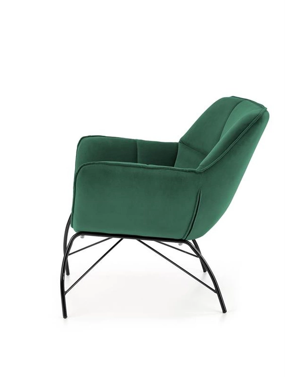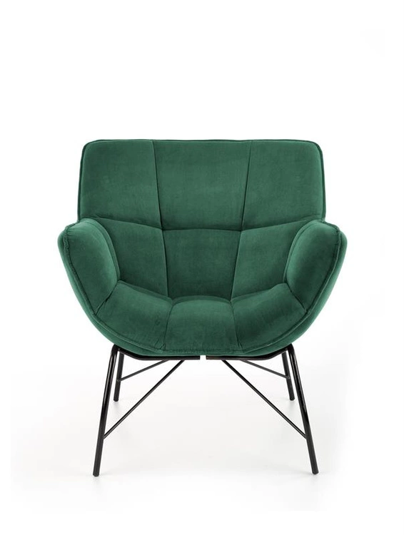 - Fotel BELTON w kolorze ciemnej zieleni to elegancki mebel o nowoczesnym designie. Tapicerowany miękką tkaniną velvet i osadzony na czarnej, stalowej podstawie, zapewnia wygodę oraz wyjątkowy charakter każdemu wnętrzu.