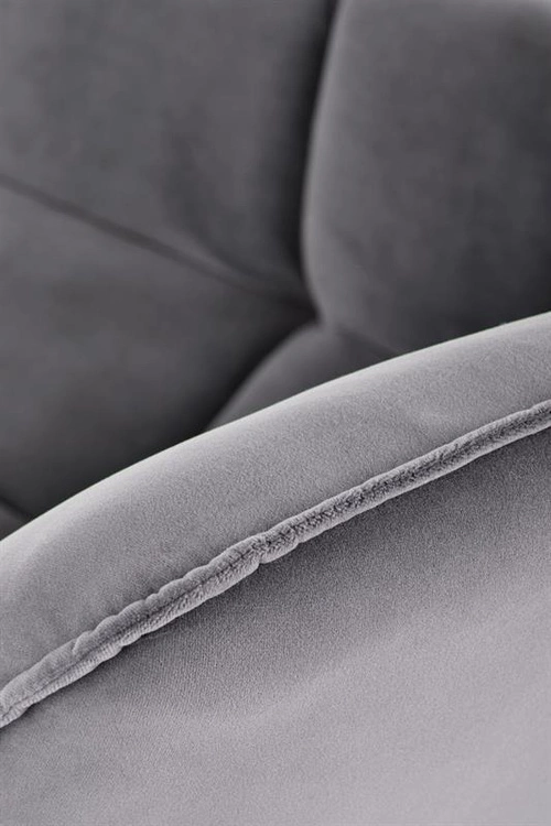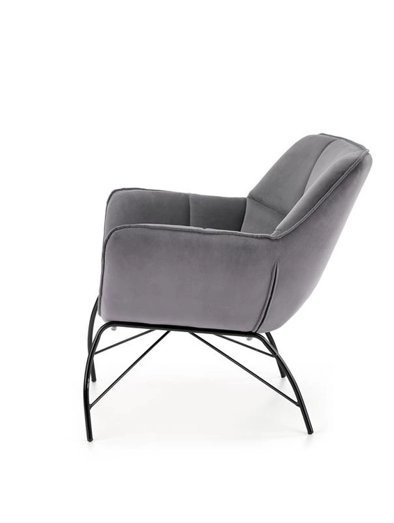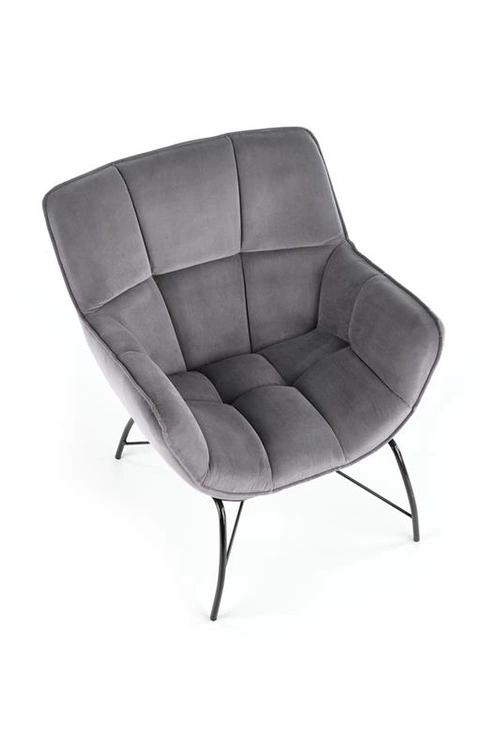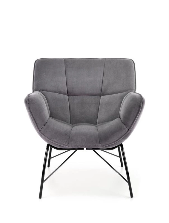 - Fotel BELTON w kolorze popielatym to połączenie elegancji i komfortu. Tapicerowany miękką tkaniną velvet i osadzony na czarnej, stalowej podstawie, stanowi stylowy akcent do salonu, sypialni lub pokoju dziennego.