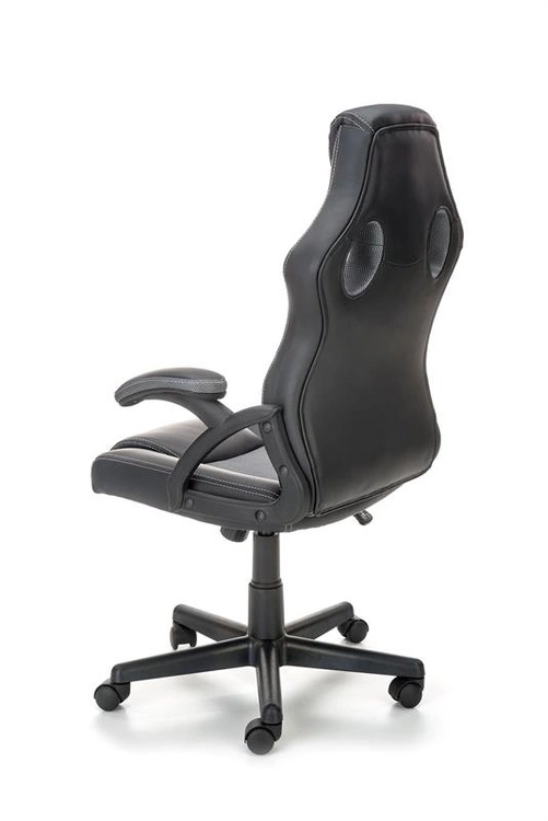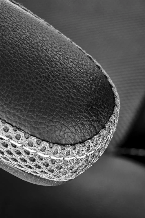 Tapicerka z wysokiej jakości eco skóry oraz przewiewnej tkaniny membranowej gwarantuje trwałość, wygodę i odpowiednią cyrkulację powietrza. Profilowane oparcie i miękkie siedzisko zapewniają właściwe podparcie dla pleców, a mechanizm TILT umożliwia przyjemne bujanie i blokadę w pozycji pionowej.