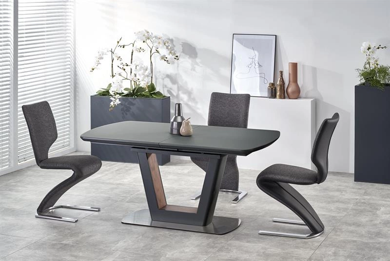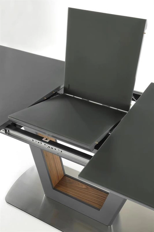 - Stół BILOTTI w kolorze antracytowy mat / orzech to nowoczesny mebel o eleganckiej formie. Łączy szkło, MDF i stal nierdzewną, a funkcja rozkładania zapewnia wygodę i praktyczność w codziennym użytkowaniu.