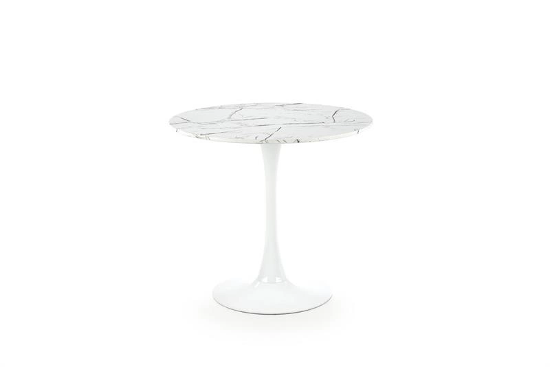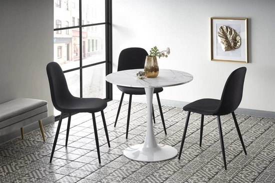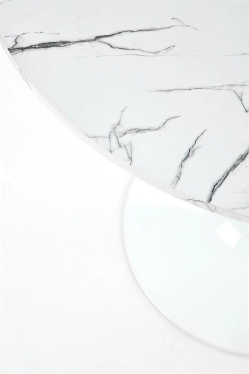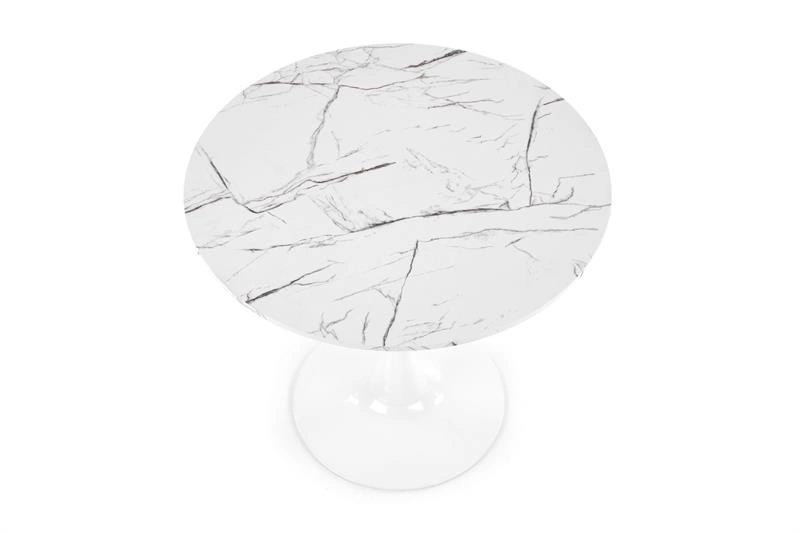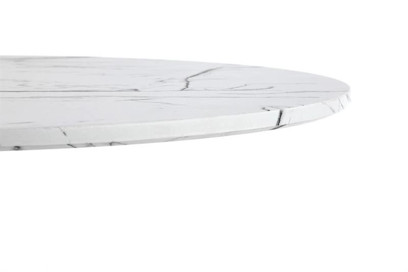 Stół DENVER to połączenie nowoczesnego designu i ponadczasowej elegancji. Okrągły blat w kolorze białego marmuru nadaje wnętrzu subtelny charakter, wprowadzając nutę luksusu i lekkości. Doskonale imituje naturalny kamień, zachowując przy tym trwałość i łatwość w utrzymaniu czystości.