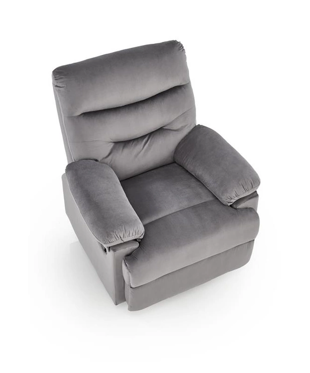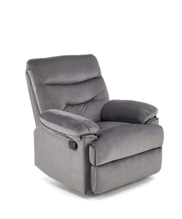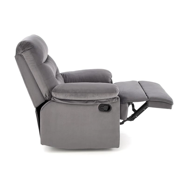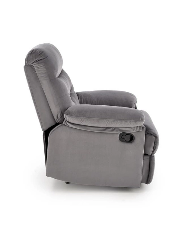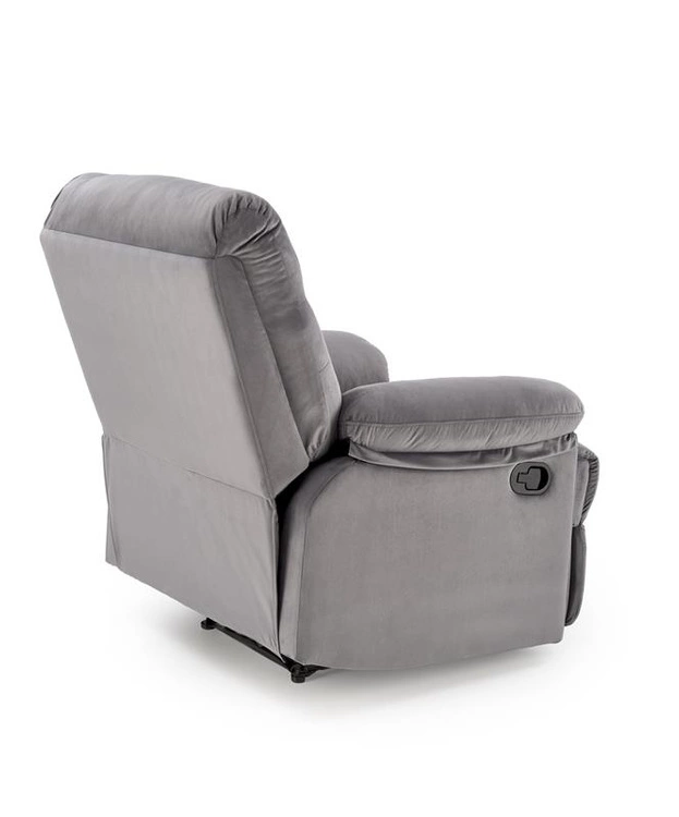 - Fotel DRAGER w kolorze popielatym to połączenie elegancji i komfortu. Tapicerowany miękką tkaniną velvet, posiada funkcję rozkładania, dzięki której zapewnia idealne warunki do relaksu. Doskonały do salonu, sypialni lub pokoju wypoczynkowego.