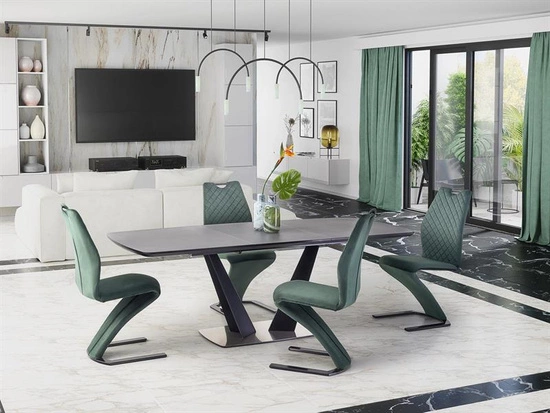 Stół FANGOR doskonale sprawdzi się w przestronnych jadalniach i nowoczesnych salonach, tworząc eleganckie miejsce spotkań przy wspólnych posiłkach.
