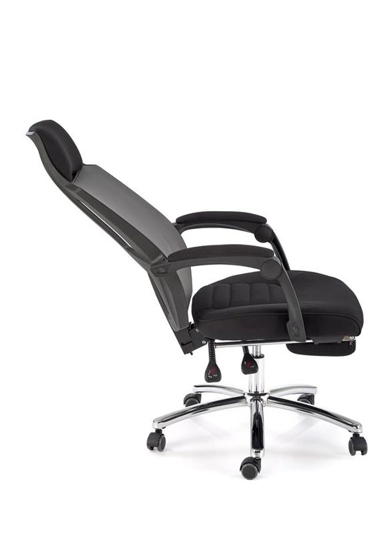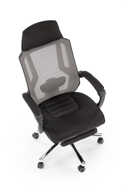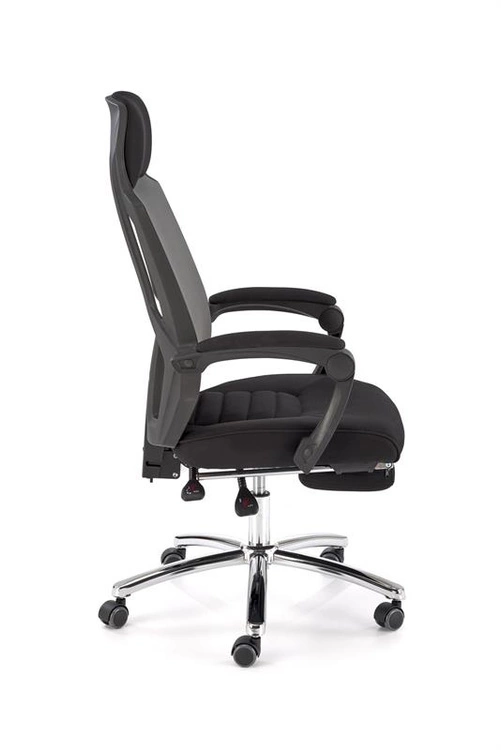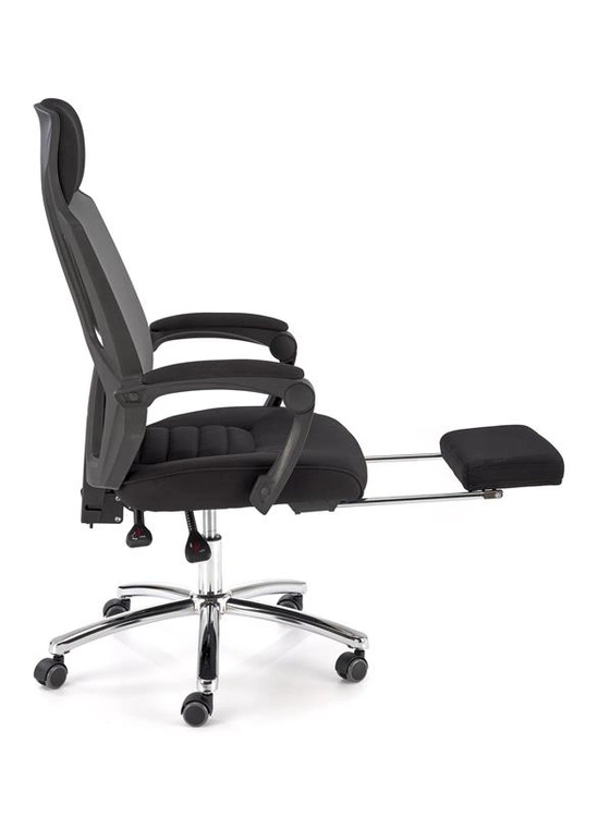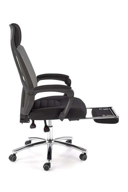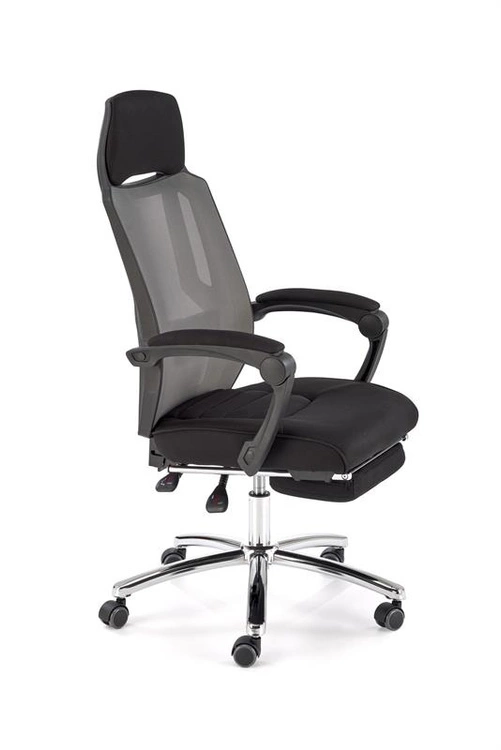 Ergonomiczny fotel pracowniczy FREEMAN z podnóżkiem w kolorze czarno-popielatym